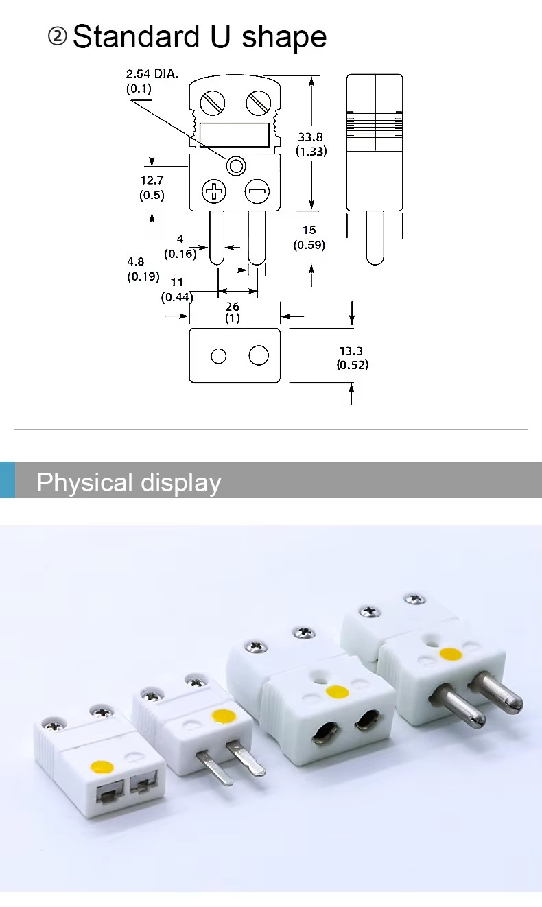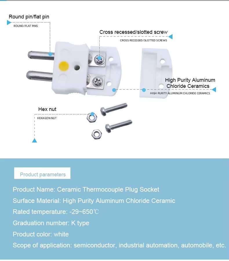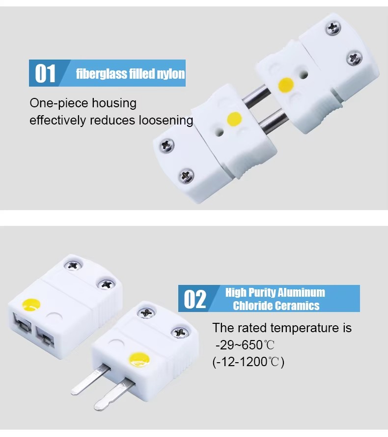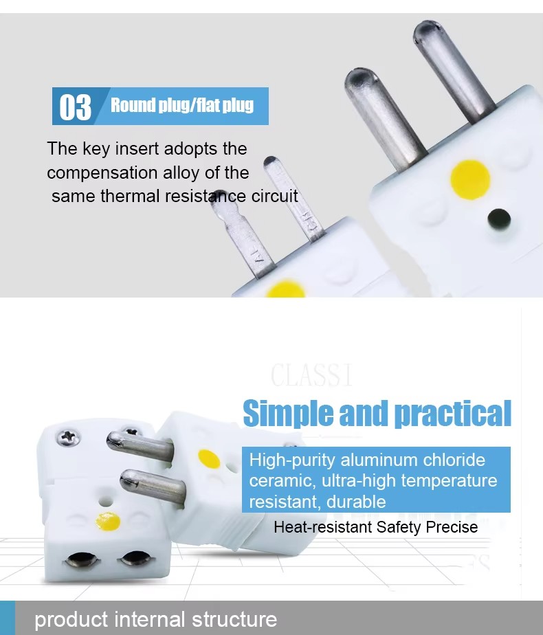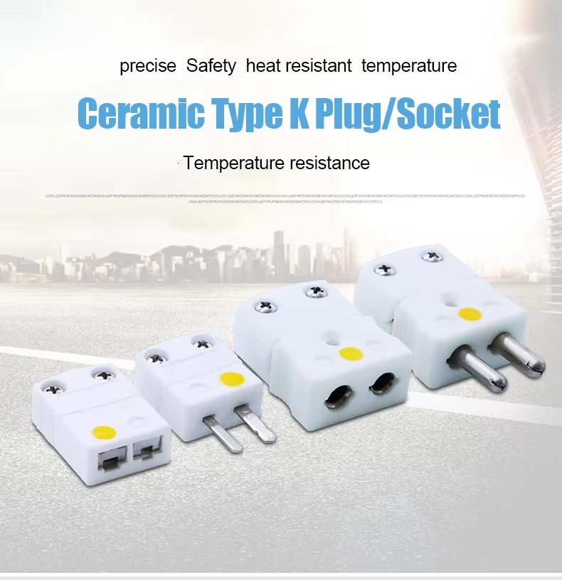 High Temperature Resistance 650 Celsius Degree White Ceramic Type K Thermocouple Connector Type K Male and Female Plug Socket